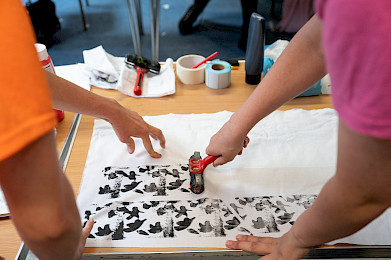 Pattern, printmaking and product design with artist Sarina Mantel and young people.