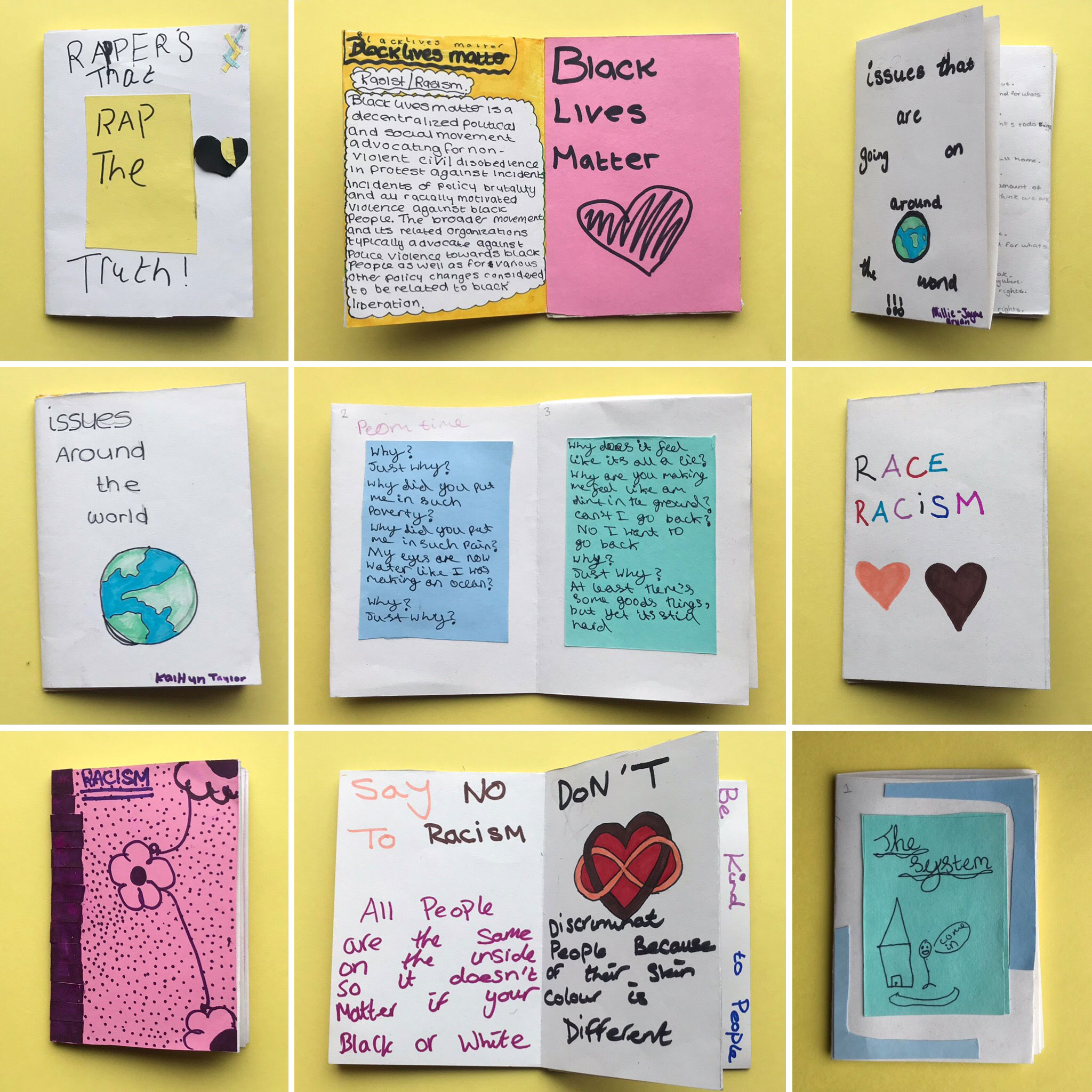 For New Town Voices, writer and poet Belinda Zhawi collaborated with a group of young people from across social care services in Barking and Dagenham. The sessions explored the power of spoken word using a range of creative and collaborative techniques including protest, cut-out, black-out and audio poetry, to reflect on personal experiences of the year and imagine alternative futures.