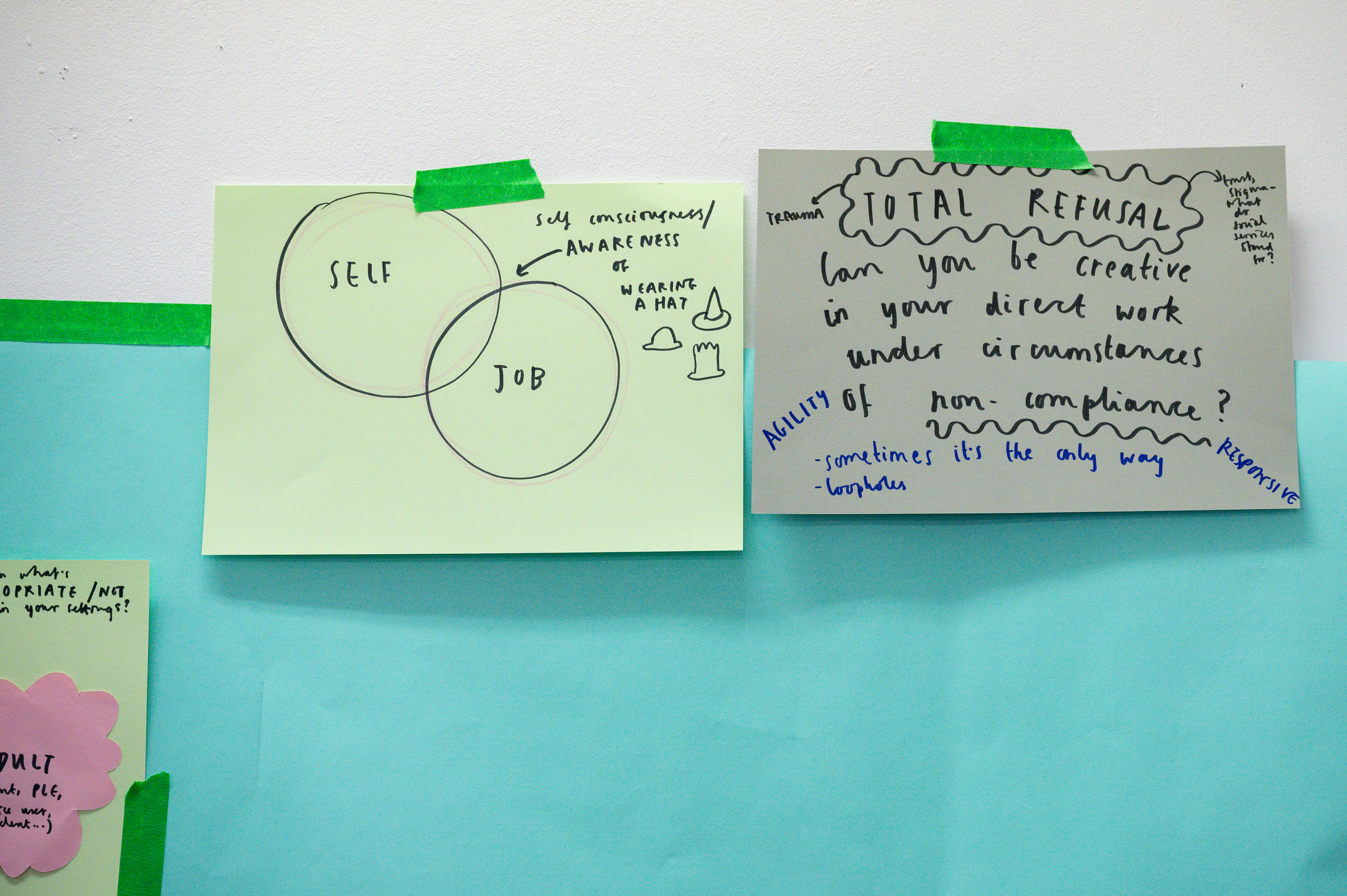We did this through running playful and curious activities and conversations led by artists, Belinda Zhawi, India Harvey, Nicole Morris, Gayle Chong Kwan and Amy Leung addressing questions around What is direct practice? What does it feel like for our adults when we do direct work with them? What creative approaches could look like in our work and what difference they could make to direct practice.